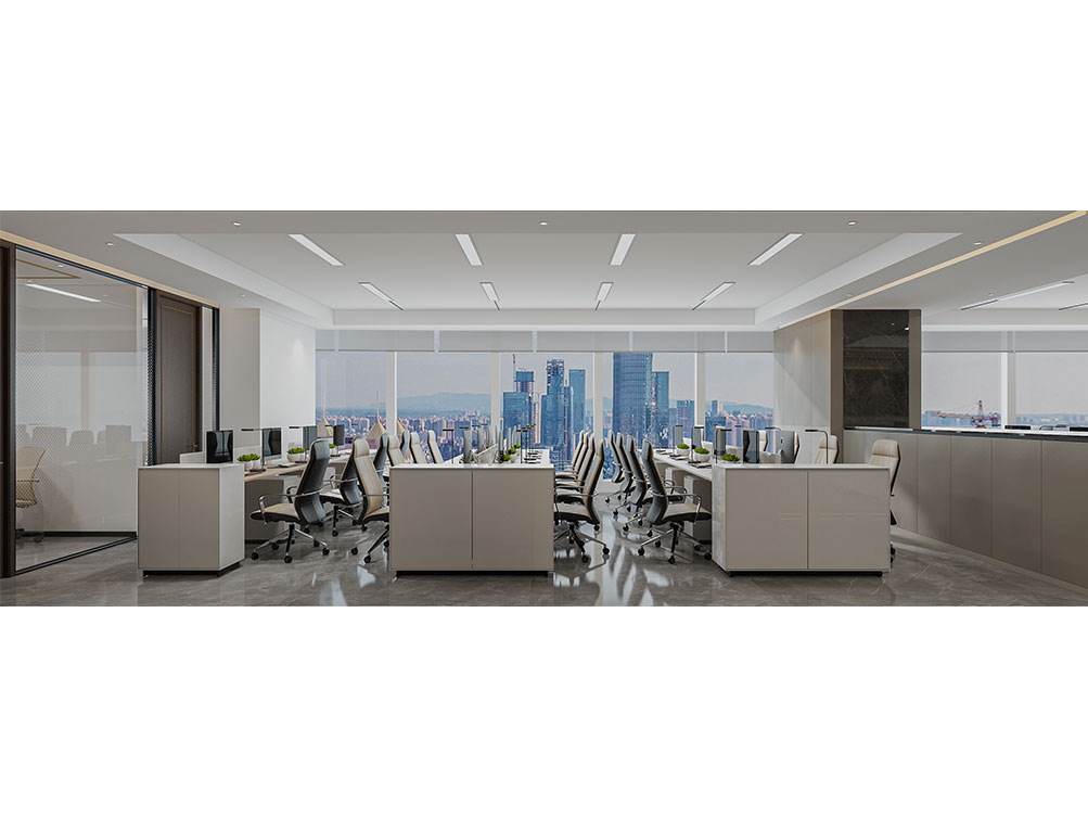 華潤集團辦公區(qū)裝修效果以 “大氣穩(wěn)重 + 多元融合” 為核心,主色調(diào)選用深灰、米白搭配原木色與華潤標志性紅色點綴,既彰顯央企的厚重底蘊,又兼具現(xiàn)代辦公的活力。前臺接待區(qū)采用大面積啞光石材背景墻,嵌入金屬質(zhì)感的集團 LOGO,搭配線條利落的深色接待臺與藝術(shù)化綠植裝置,傳遞專業(yè)且有溫度的第一印象;開放辦公區(qū)采用模塊化智能工位設(shè)計,配備獨立收納系統(tǒng)與人體工學(xué)座椅,墻面穿插集團業(yè)務(wù)板塊(如能源、零售、健康)的簡約主題掛畫,體現(xiàn)多元產(chǎn)業(yè)屬性;會議室按規(guī)模配置高清智能會議系統(tǒng)與隔音材質(zhì),大型會議室增設(shè)遠程視頻設(shè)備,滿足跨區(qū)域協(xié)作需求;同時設(shè)置兼具商務(wù)與休閑功能的茶水區(qū)、展示集團發(fā)展歷程的文化墻,以及供員工放松的休閑區(qū),整體空間在保障辦公高效的同時,既凸顯企業(yè)品牌調(diào)性,又兼顧員工體驗與多元業(yè)務(wù)場景適配性。