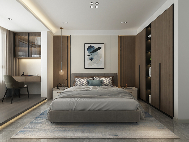 ??濟(jì)南阿達(dá)森裝飾為萬象東方設(shè)計的現(xiàn)代簡約風(fēng)裝修,以淺米色系打底,整面定制柜藏起雜亂的隱形收納巧思,正契合濟(jì)南寫字樓辦公室裝修里的高效空間利用邏輯;懸浮式電視柜的輕盈感