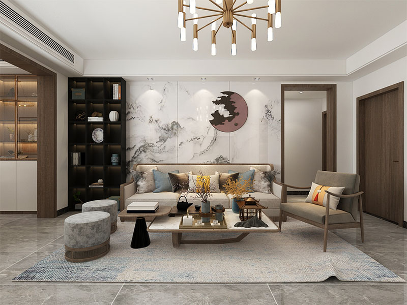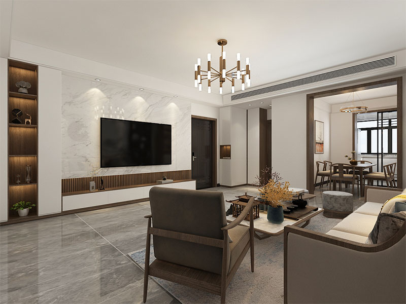??濟(jì)南阿達(dá)森裝飾為穎秀華府打造的現(xiàn)代極簡(jiǎn)輕奢風(fēng)。淺米色大尺寸沙發(fā)柔化空間,搭配焦糖棕單人椅,用撞色拉出層次感;黑白紋理茶幾與同質(zhì)感背景墻呼應(yīng),高級(jí)又利落。深色木飾面 +