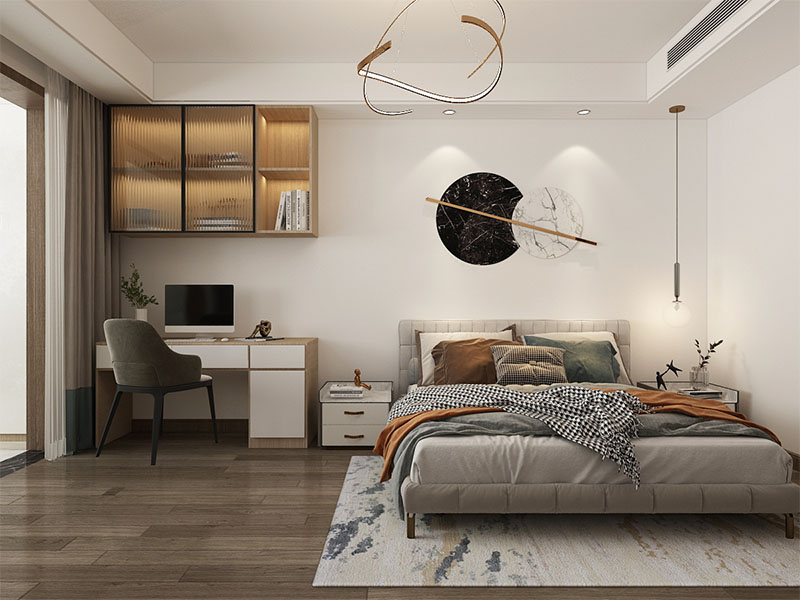 ??濟(jì)南阿達(dá)森裝飾為萬(wàn)象東方設(shè)計(jì)的現(xiàn)代簡(jiǎn)約風(fēng)裝修,以淺米色系打底,整面定制柜藏起雜亂的隱形收納巧思,正契合濟(jì)南寫(xiě)字樓辦公室裝修里的高效空間利用邏輯;懸浮式電視柜的輕盈感