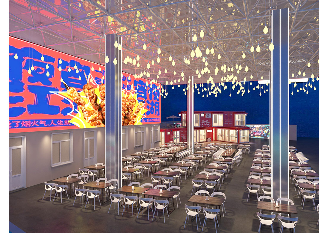 設計理念: 集裝箱大排檔裝修效果圖展現(xiàn)出了各種元素相互碰撞從而打造出完美融合。在總體布局上來說采用了集裝箱的利用和加油站的輪廓,再經(jīng)過精美的裝飾,該濟南店面裝修能激發(fā)了顧客們的消費興趣與獨特的審美觀點。在墻面上掛上每家小吃的精美照片,為大排檔吸引來更多的人群。