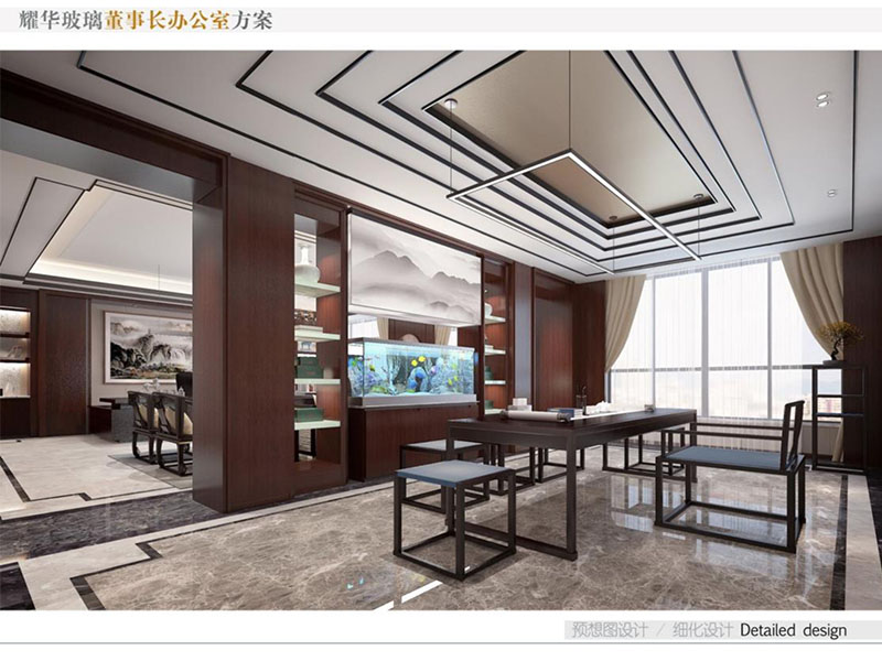 耀華玻璃董事長辦公室裝修效果圖彰顯出了企業(yè)的高端形象。董事長辦公室設(shè)計(jì)采用了中式風(fēng)格,運(yùn)用高質(zhì)量的木材、優(yōu)質(zhì)玻璃等,給辦公室營造出沉穩(wěn)的氣氛。空間布局合理,既有寬敞的辦公區(qū),也有舒適的接待室和休息區(qū)。同時(shí),辦公室內(nèi)也會(huì)融入耀華玻璃的特色元素,如玻璃藝術(shù)品或公司標(biāo)志,體現(xiàn)企業(yè)品牌和創(chuàng)新精神。