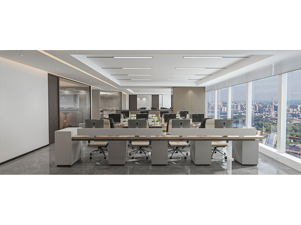 華潤集團辦公區(qū)裝修效果以 “大氣穩(wěn)重 + 多元融合” 為核心,主色調(diào)選用深灰、米白搭配原木色與華潤標志性紅色點綴,既彰顯央企的厚重底蘊,又兼具現(xiàn)代辦公的活力。前臺接待區(qū)采用大面積啞光石材背景墻,嵌入金屬質(zhì)感的集團 LOGO,搭配線條利落的深色接待臺與藝術(shù)化綠植裝置,傳遞專業(yè)且有溫度的第一印象;開放辦公區(qū)采用模塊化智能工位設(shè)計,配備獨立收納系統(tǒng)與人體工學(xué)座椅,墻面穿插集團業(yè)務(wù)板塊(如能源、零售、健康)的簡約主題掛畫,體現(xiàn)多元產(chǎn)業(yè)屬性;會議室按規(guī)模配置高清智能會議系統(tǒng)與隔音材質(zhì),大型會議室增設(shè)遠程視頻設(shè)備,滿足跨區(qū)域協(xié)作需求;同時設(shè)置兼具商務(wù)與休閑功能的茶水區(qū)、展示集團發(fā)展歷程的文化墻,以及供員工放松的休閑區(qū),整體空間在保障辦公高效的同時,既凸顯企業(yè)品牌調(diào)性,又兼顧員工體驗與多元業(yè)務(wù)場景適配性。